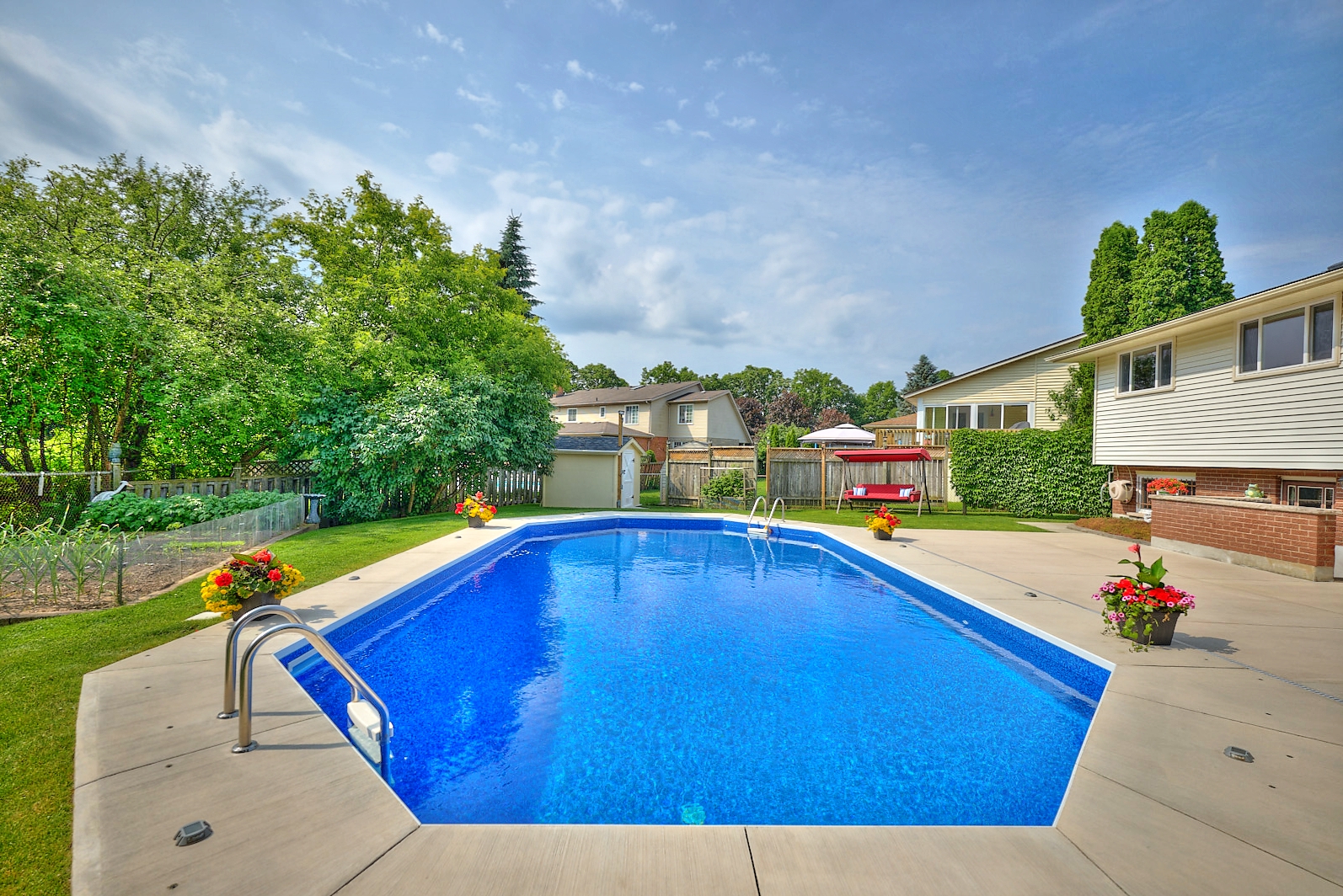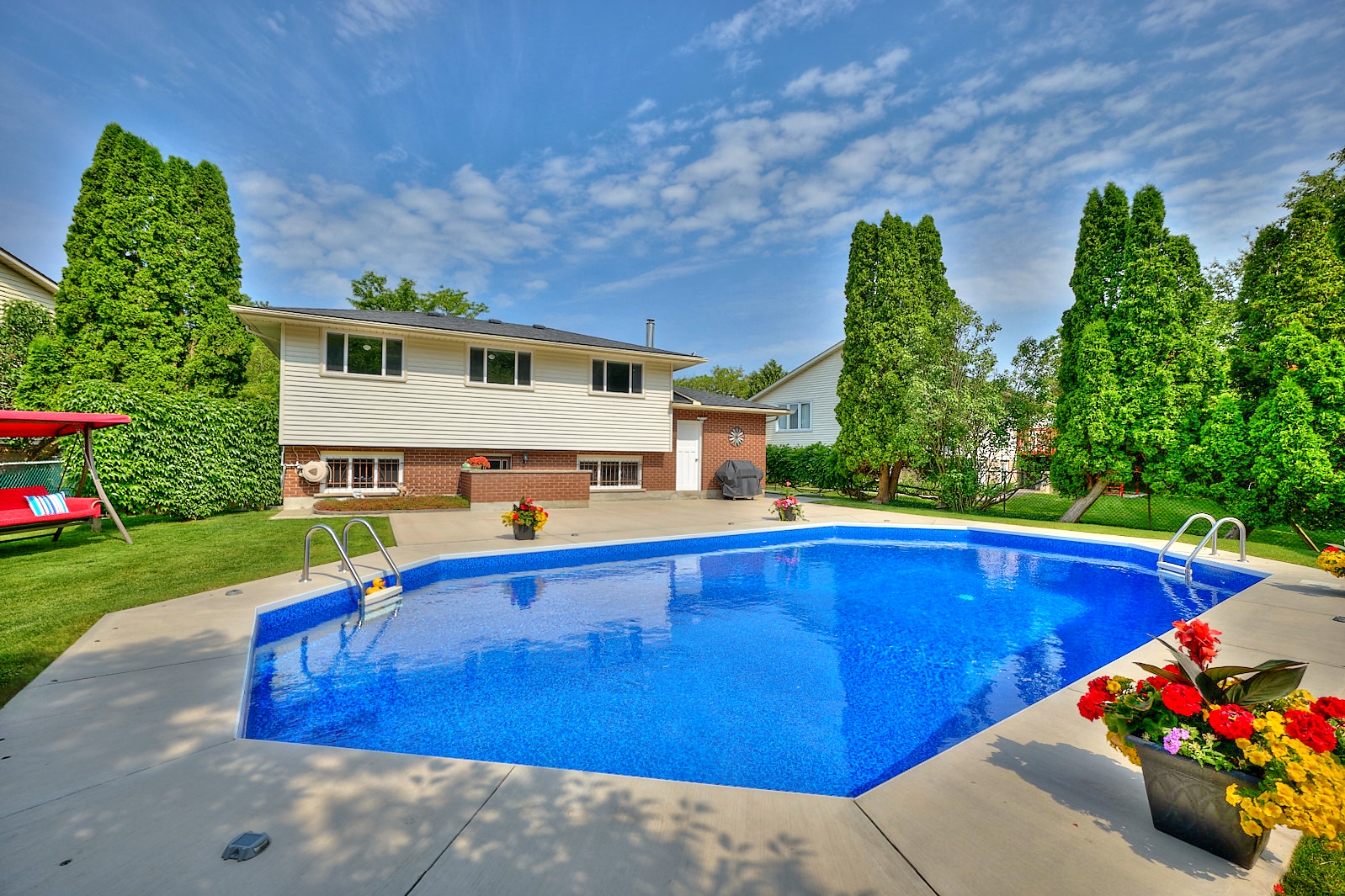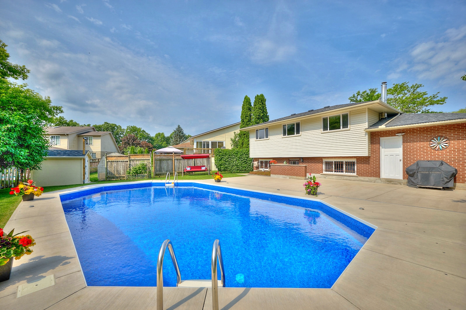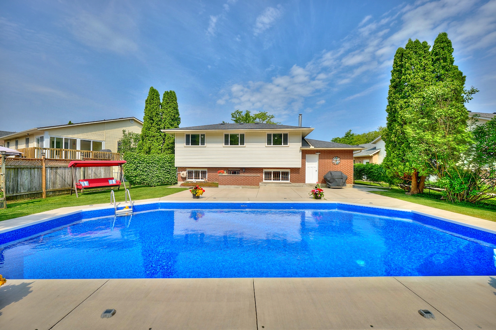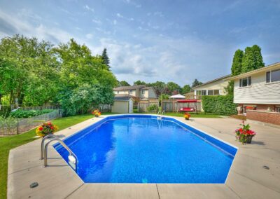 Prepare to be impressed at 6884 Devon Drive! This spacious, move-in-ready backsplit has been meticulously maintained and is nestled on a quiet, gorgeous street in Niagara Falls. Backing directly onto peaceful Charnwood Park – with no rear neighbours and a private backyard oasis, this property is sure to be a dream come true! Filled with natural light and thoughtful updates throughout, this home blends comfort, convenience and functionality seamlessly. Step inside and you’re welcomed by an inviting living room that flows effortlessly into the dining room. With two skylights, in addition to the large windows, this space truly feels so bright, open and spacious. The adjacent kitchen, that was beautifully renovated in 2019, offers a light and airy feeling along with ample cabinetry and counter space. Equipped with enough room for a small breakfast nook or table, getting the kids fed before the day commences will be as simple as can be. Upstairs, the second level features three bedrooms including the expansive primary bedroom that has plenty of closet space. The recently renovated 4-piece bathroom (2023) compliments the overall fresh and modern feel of the home and provides an ideal spot to unwind after a long day. The lower level continues to impress with oversized windows and direct access to the backyard. The recreation room truly offers endless possibilities and could be used as a playroom, home gym, media area or perhaps to create a fourth bedroom. This level concludes with a 3-piece bathroom. The fourth level offers plenty of storage space, along with the laundry facilities. With a stunning backdrop of foliage and an inground pool that was redone in 2023, the backyard is where endless family memories will be made! Major updates include: shingles (2016), owned hot water tank (2019), windows (2010), furnace and central air (2011). You’re invited to experience all that this property has to offer – love and precision have been combined to make a perfect family home!